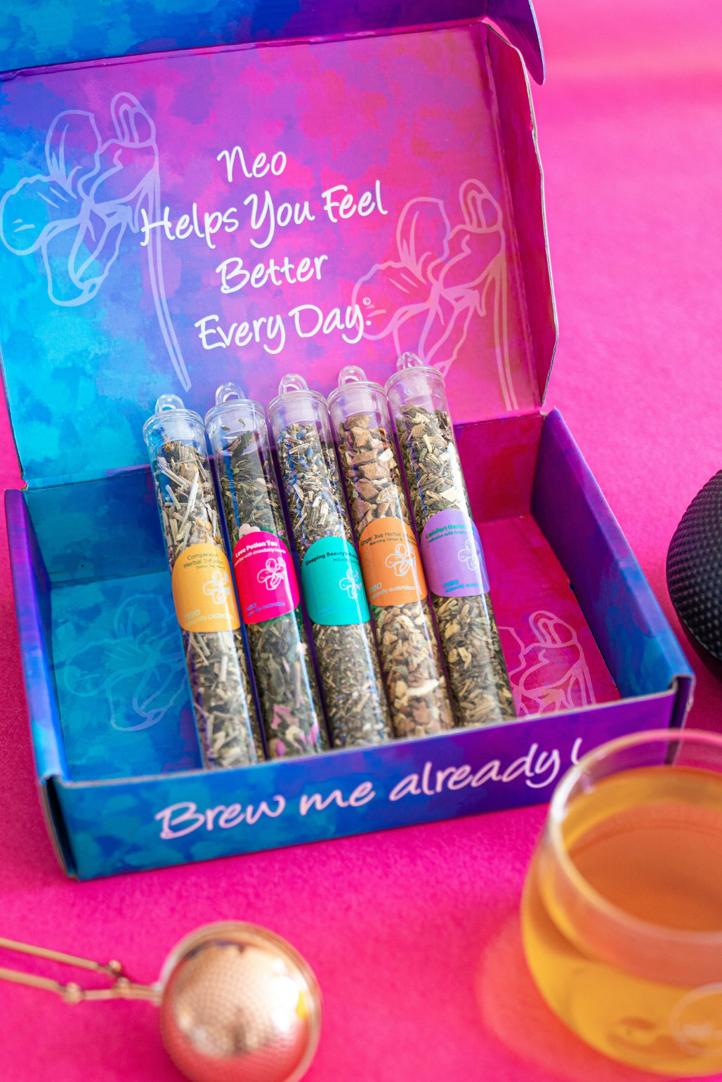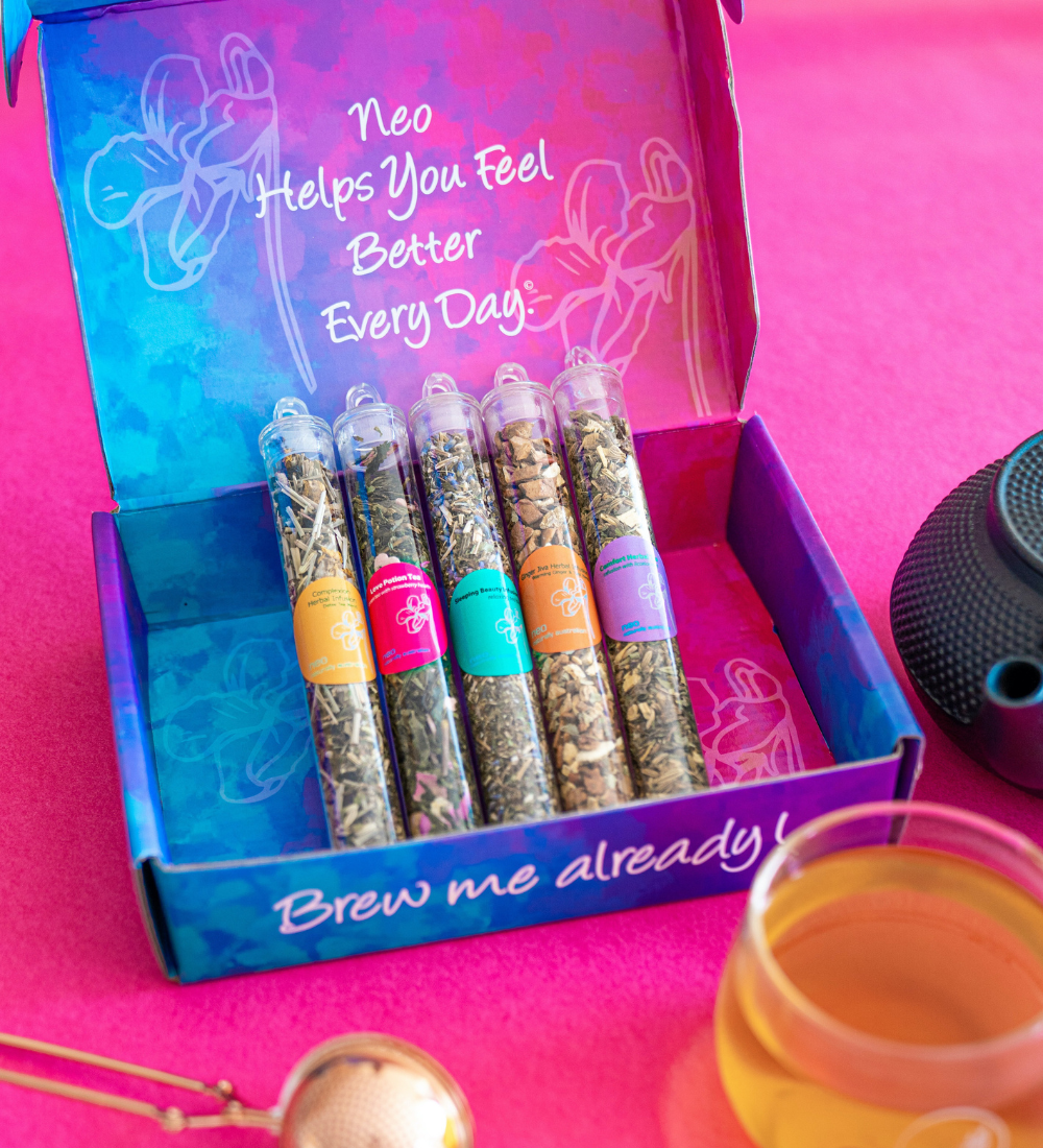 Fast forward to today, Neo has grown into a vibrant wellness brand, blending tradition with modern self-care. With a deep commitment to sustainability, we source premium herbs and teas from across Australia, all beautifully blended & packed in our signature apothecary glass jars to lock in their healing magic.